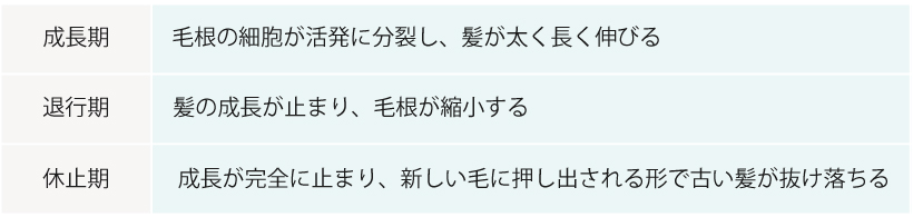 髪の毛は、以下のように生え変わりのサイクルを繰り返しています。